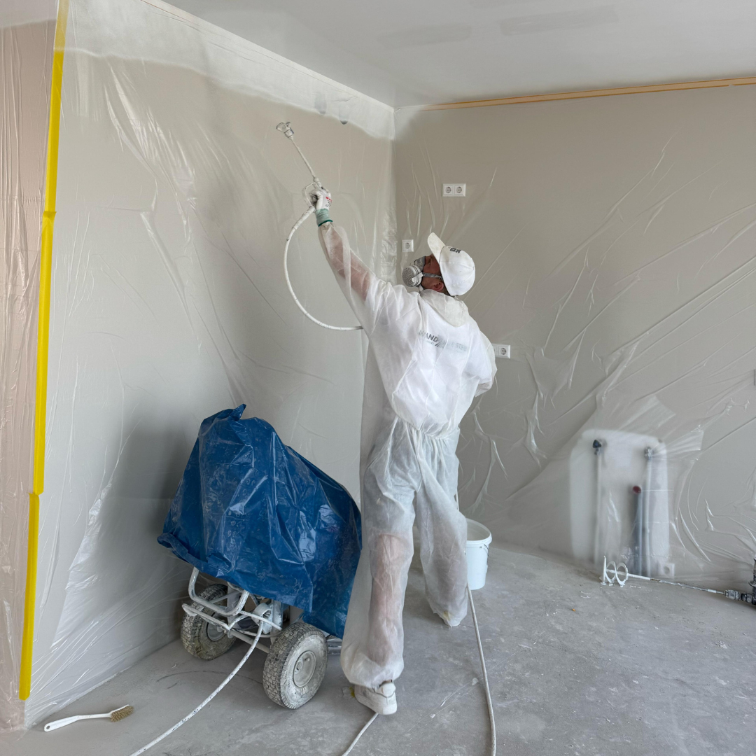 Wij zorgen voor het afplakken en beschermen van vloeren en meubels, maar het helpt als de ruimte leeg is.